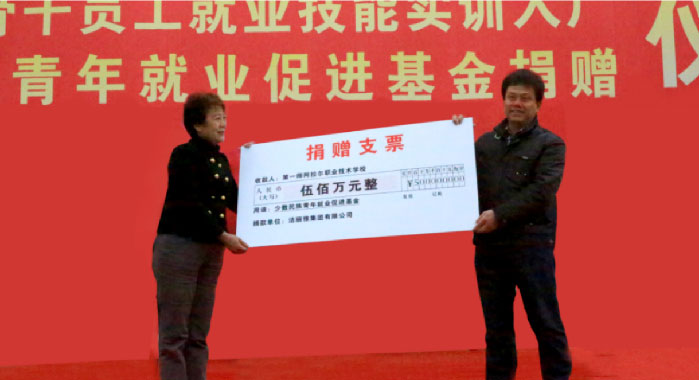 潔麗雅集團在發展過程中,積極履行社會責任參與公益事業,助力社會和諧發展, 倡導"綠葉不忘根, 致富不忘本, 鐵肩擔道義,不舍祖德蔭"。